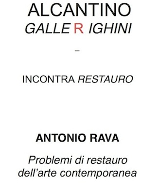 ALCANTINO: la GALLERIGHINI incontra RESTAUROAntonio Rava, "problemi di restauro dell’arte contemporanea", venerdì 6 giugno alle 20.30 (GALLERIGHINI; via Rasica, Madonna di Tirano). Cristina CulantiData: 28/05/2014