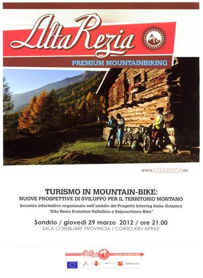 Valtellina e Valchiavenna si preparano alla primavera e all’estate e offrono la possibilità di trascorrere le vacanze... in sella a una mountain bike! Il progetto Interreg ALTA REZIA EVOLUTION VALTELLINA E VALPOSCHIAVO BIKE verrà presentato domani, giovedì 29 marzo, alle 21.00 presso la Sala consiliare della Provincia di Sondrio.