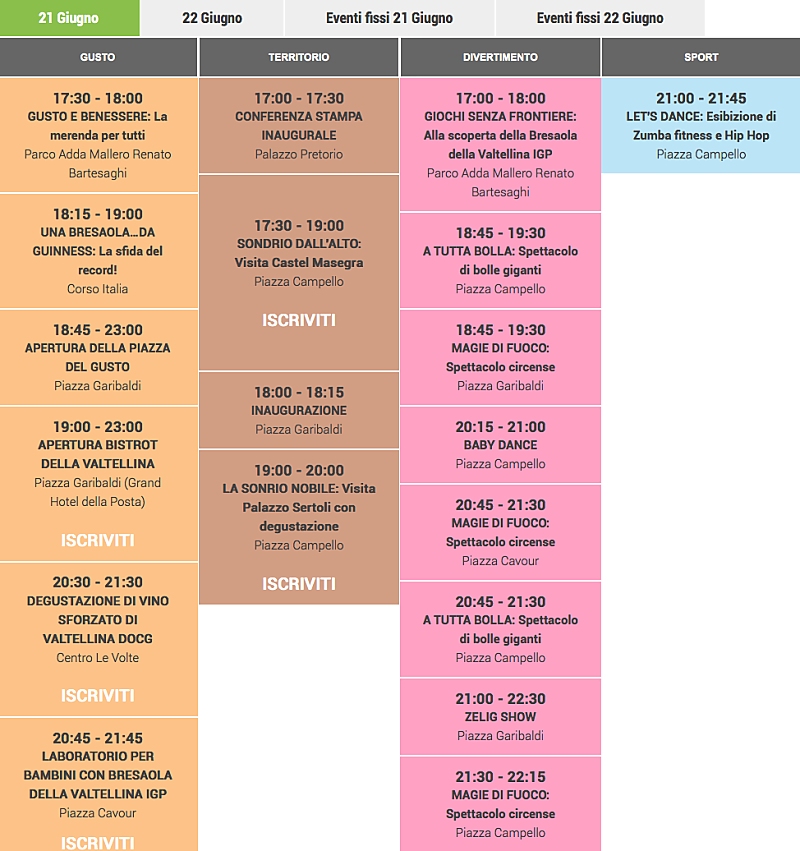 40 appuntamenti completamente gratuiti divisi in percorsi tematici. QUI PUOI ACQUISTARE LA BRESAOLA DELLA VALTELLINA IGP - Il Buongustaio – Via Caimi – Sondrio