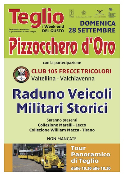 TEGLIO e il suo PIZZOCCHERO D?ORONon ha bisogno di presentazioni l’evento che prende vita a Teglio domenica prossima, 28 settembre. Il piatto principe della cucina valtellinese è lui, il pizzocchero, e a Teglio è "d’oro"! Cristina CulantiData: 24/09/2014